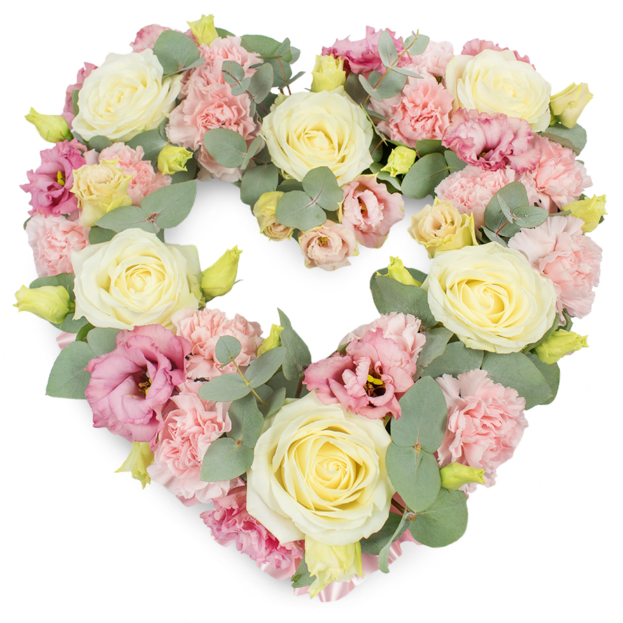 Celebrate the life of your loved one with our beautiful remembrance flower arrangement. This elegant display features a stunning mix of white roses, pink carnations, pink lisianthus, and eucalyptus leaves, expertly hand-picked to ensure maximum freshness and beauty.